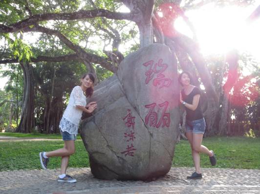 來到這顆有900多年樹齡的古榕樹下,大家完全忘記了清晨3.5小時的飛行和1.5小時的車程所帶來的些許疲憊,都轉而為這一顆樹而形成的一片林驚嘆不已。我們的微笑與陽光一起灑在了瑞麗這片美麗的土地上。