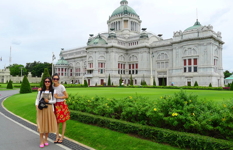 咱們中國(guó)有句話“不到長(zhǎng)城非好漢”,到曼谷旅游,同樣有一個(gè)地方必須去,那就是“大皇宮”。佛塔式的尖頂直插云宵,魚鱗狀的玻璃瓦燦爛輝煌,隨處可見神獸“大鵬金翅鳥”高高的翹起尾巴,我們也不忘在這雄偉而瑰麗的宮中用相機(jī)記錄我們美麗的身影和歡樂。