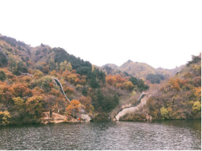 穿過(guò)大壩,我們乘舟沿河而行,湖光山色盡收眼底。登岸畢,徑直向水長(zhǎng)城尋跡,沿著彎曲的山路,輕柔的秋風(fēng)吹拂一片片紅葉,那深黃淺紅間,便成了最美的秋詞。隨手折一枝無(wú)名花莖,靜候與秋天的相遇。每一程路過(guò)的風(fēng)景,都會(huì)生出一分流連。踏著蜿蜒的古道,找尋過(guò)往的痕跡,享受著林間自然與心靈的默契。