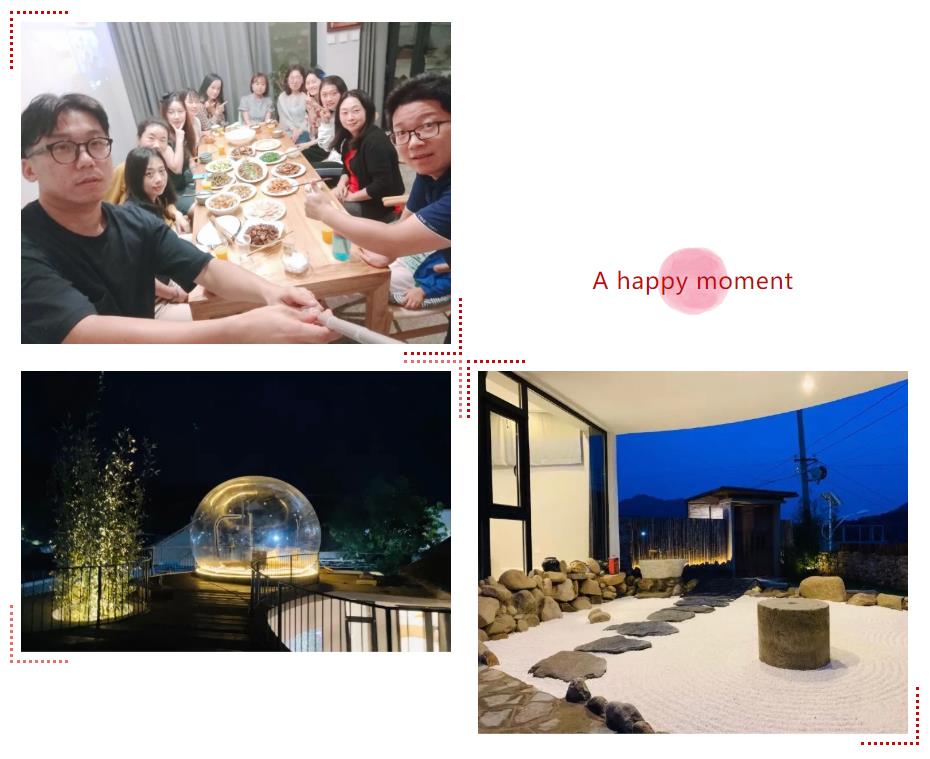民宿內(nèi)不僅擺滿了書,還配有投影儀和各種娛樂設施;在二層的天臺上還有一個透明圓型觀景屋,是觀賞夜景的絕佳之地,這給大家的團建之旅增添了一絲浪漫的氣息。晚飯過后,小伙伴們吃著零食,看著電影,在歡聲笑語中度過了美好的一晚。