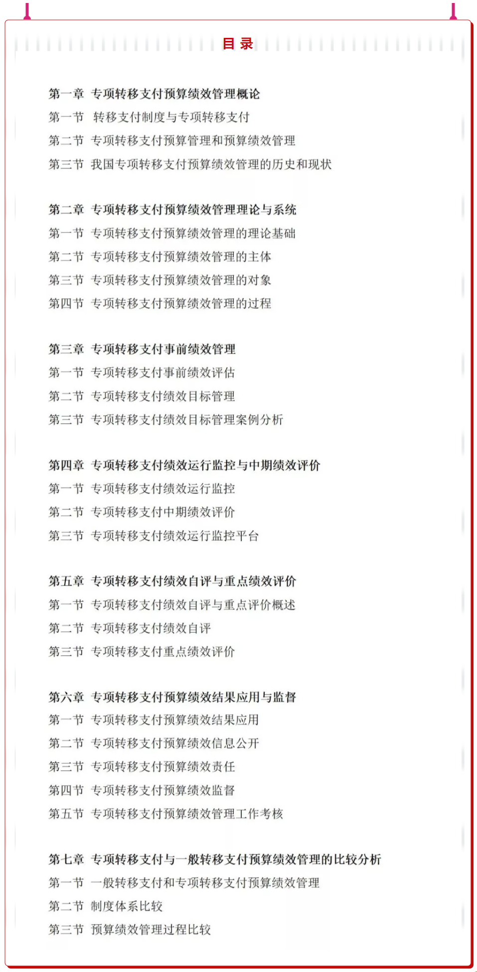 該書按照中央各項文件要求,對專項轉(zhuǎn)移支付預算績效管理各環(huán)節(jié)進行了理論與實踐的“雙探索”,此書是新時代全面實施預算績效管理背景下,第一本關(guān)于專項轉(zhuǎn)移支付預算績效管理的著作,不僅可以作為財經(jīng)類院校的研究生教學用書,也可以作為從事預算績效管理專業(yè)領(lǐng)域的人員學習參考讀物。