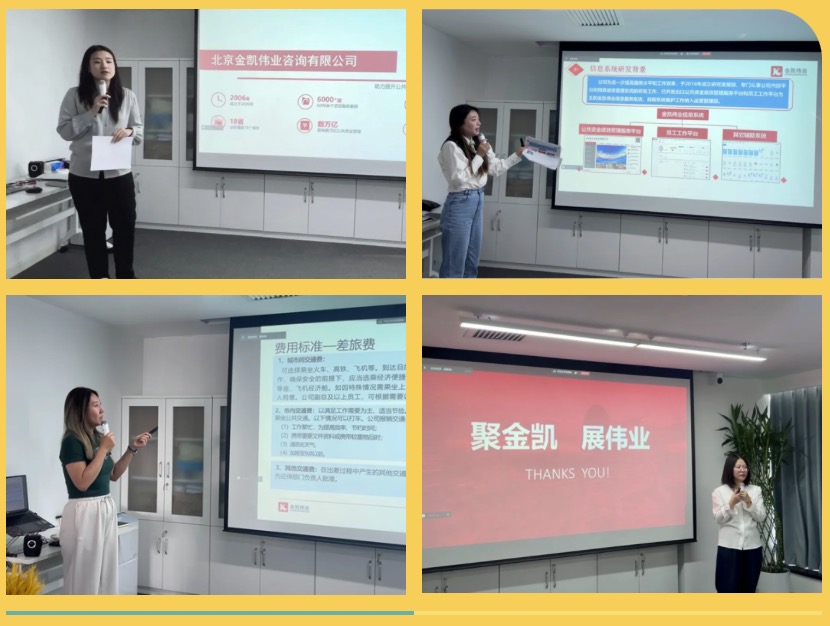 云木收夏色,木葉動秋聲。伴隨著秋天溫柔的腳步,金凱迎來了一批朝氣蓬勃、青春昂揚的新員工。為幫助新伙伴們快速融入金凱大家庭,感受企業(yè)文化魅力,公司于10月11日組織開展了“2024年度‘金・卓’計劃第三期新員工培訓(xùn)”。本次培訓(xùn)采用線上與線下相結(jié)合的方式,從企業(yè)概況、業(yè)務(wù)介紹、信息系統(tǒng)、財務(wù)系統(tǒng)、行政人事制度等方面讓大家進(jìn)一步了解金凱,助力新同事步入新境、遇見新知,開啟事業(yè)新篇章。