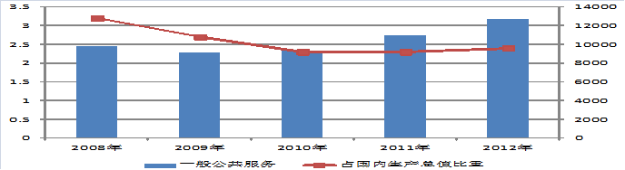 2008年以來,遵照黨中央、國(guó)務(wù)院提出的建設(shè)節(jié)約型社會(huì)的戰(zhàn)略任務(wù),我國(guó)各級(jí)政府部門積極開展節(jié)約能源、資源的工作,以一般公共服務(wù)支出為核心的政府行政經(jīng)費(fèi)增速得到一定程度的抑制,由2008年前的年均增長(zhǎng)20.0%,下降到2008年的15.1%以及2012年的10.1%,下降了近50%,僅為同期財(cái)政支出增幅的三分之二。